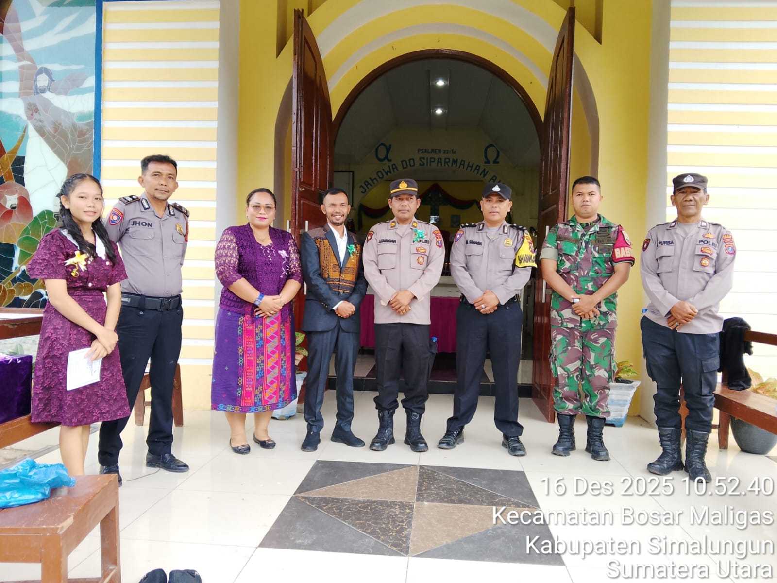 Babinsa Koramil 07/Bosar Maligas Kodim 0207/Simalungun, Sertu Bima Mandala Putra, turut hadir dalam perayaan tersebut sebagai wujud kepedulian dan kedekatan TNI dengan dunia pendidikan serta generasi muda. Kehadiran Babinsa disambut hangat oleh pihak sekolah, panitia, orang tua murid, dan para siswa-siswi yang memenuhi gereja dengan nuansa Natal yang khidmat.