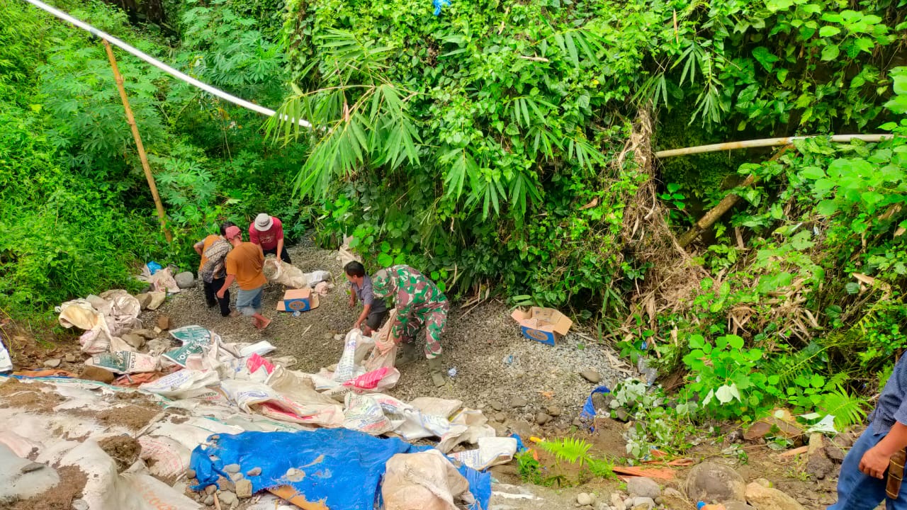 Dalam kegiatan tersebut, Babinsa bersama Pangulu dan warga setempat melakukan perbaikan badan jalan serta pembuatan tanggul darurat menggunakan karung berisi tanah. Upaya ini dilakukan sebagai langkah antisipatif guna mencegah longsor susulan sekaligus menjaga kelancaran dan keamanan arus lalu lintas, khususnya menjelang arus mudik libur Tahun Baru.