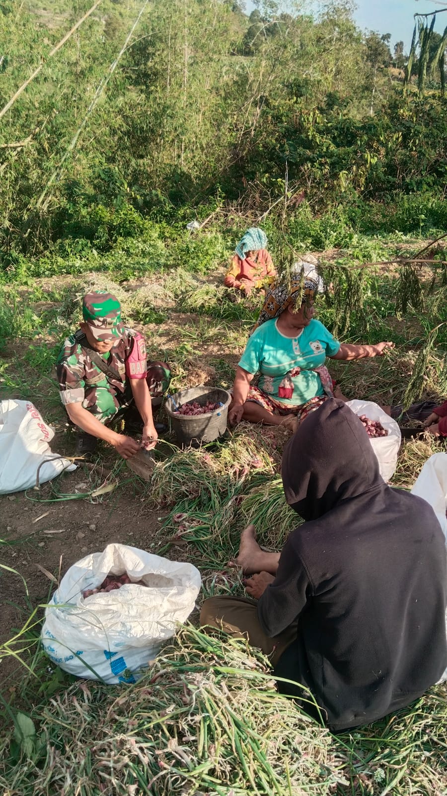 Dalam kegiatan komunikasi sosial (komsos), Serda P. Lubis menyambangi ladang milik Ibu Sherly Napitu yang saat itu tengah melakukan panen bawang merah di Nagori Tigaras, Kecamatan Dolok Pardamean, Kabupaten Simalungun. Kegiatan ini menjadi momen kebersamaan antara Babinsa dan petani, sekaligus sarana untuk memberikan motivasi dan pendampingan.