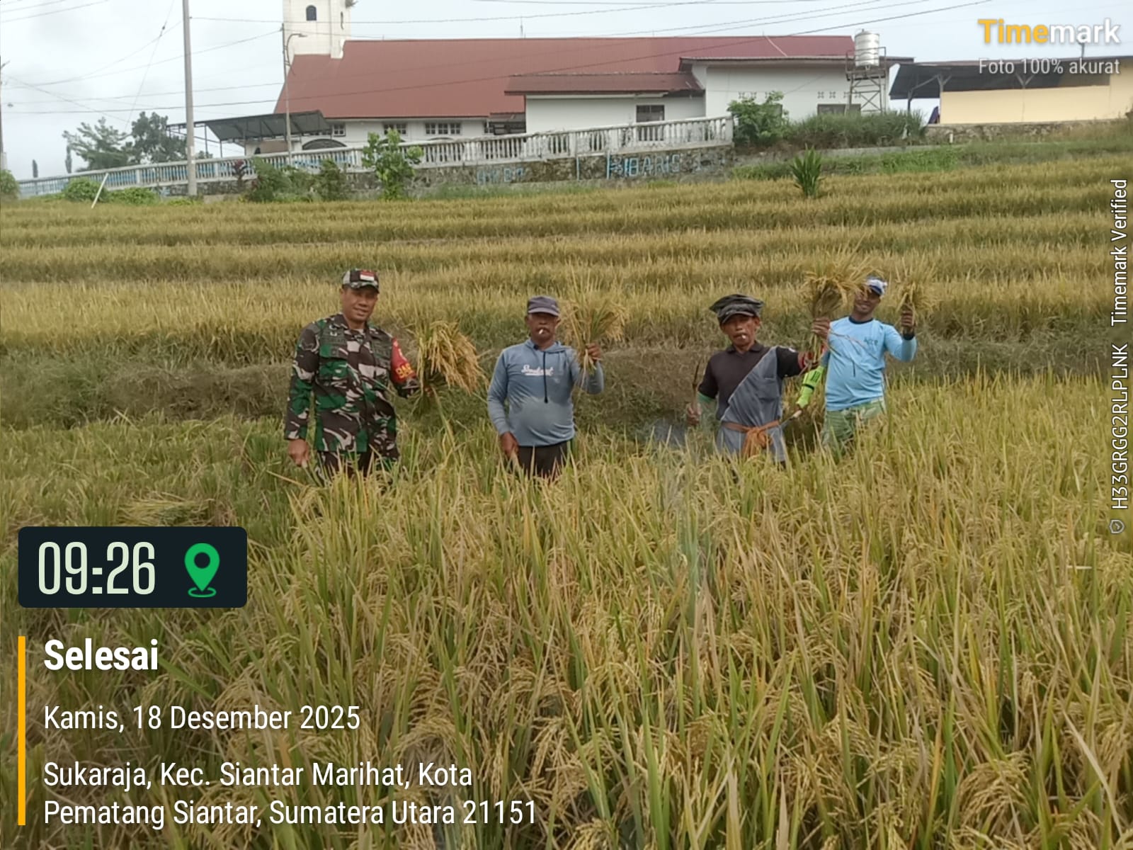 24 MEDIA SUMUT Pematang Siantar – Kebersamaan TNI dengan masyarakat kembali terlihat dalam kegiatan panen padi yang dilaksanakan oleh Kelompok Tani Nainggolan di Kelurahan Sukaraja, Kecamatan Siantar Marihat, Kota Pematang Siantar, Kamis (18/12/2025).