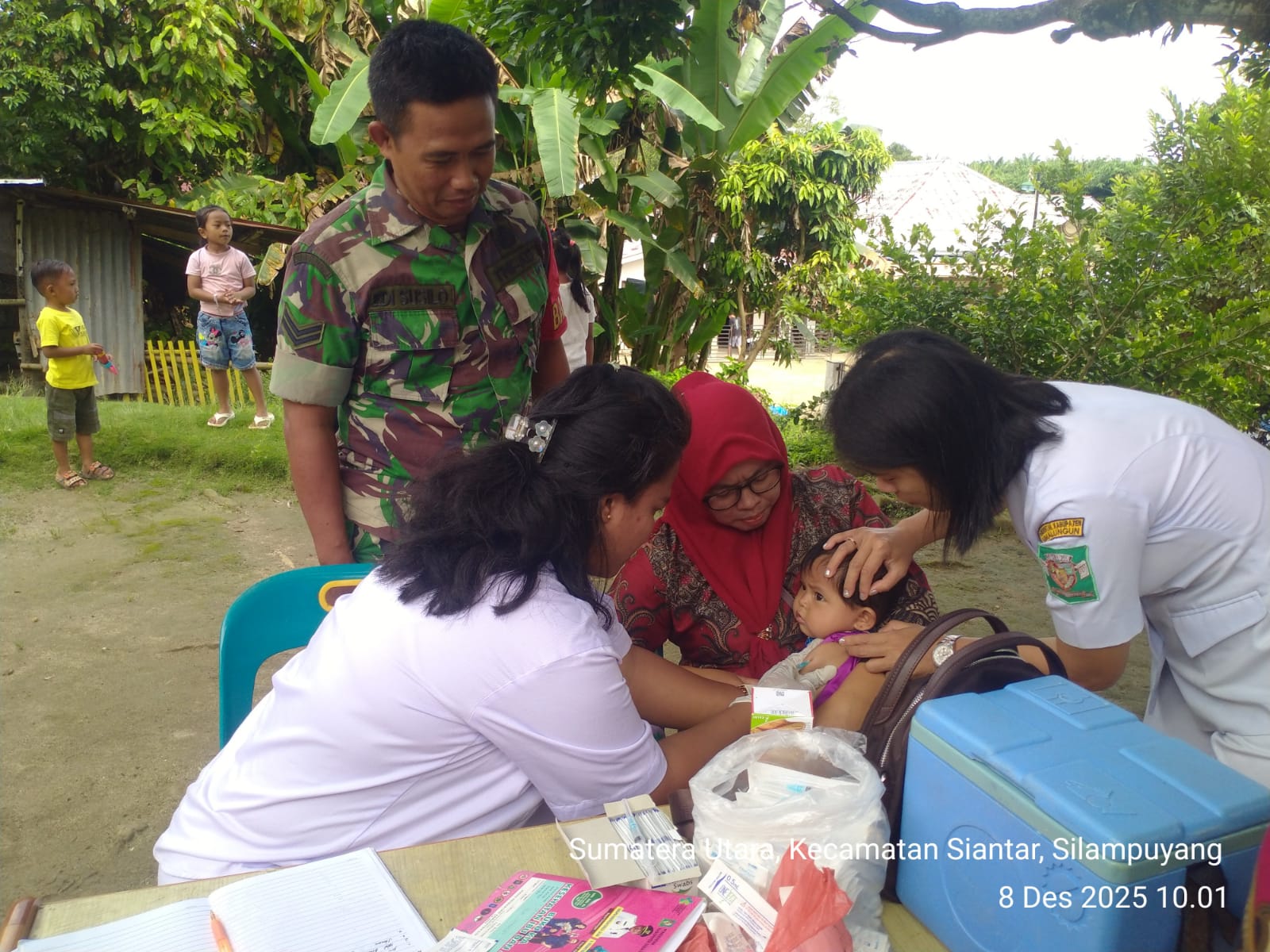 24 MEDIA SUMUT Simalungun – Dalam upaya meningkatkan kualitas kesehatan masyarakat, khususnya ibu hamil dan balita, Babinsa Koramil 10/Tanah Jawa Kodim 0207/Simalungun, Sertu Edi Susilo, melaksanakan kegiatan Komunikasi Sosial (Komsos) sekaligus pendampingan penimbangan balita dan pemeriksaan ibu hamil di Nagori Pagar Jambi, Kecamatan Tanah Jawa, pada Kamis, 8 Desember 2025 sekitar pukul 09.40 WIB.