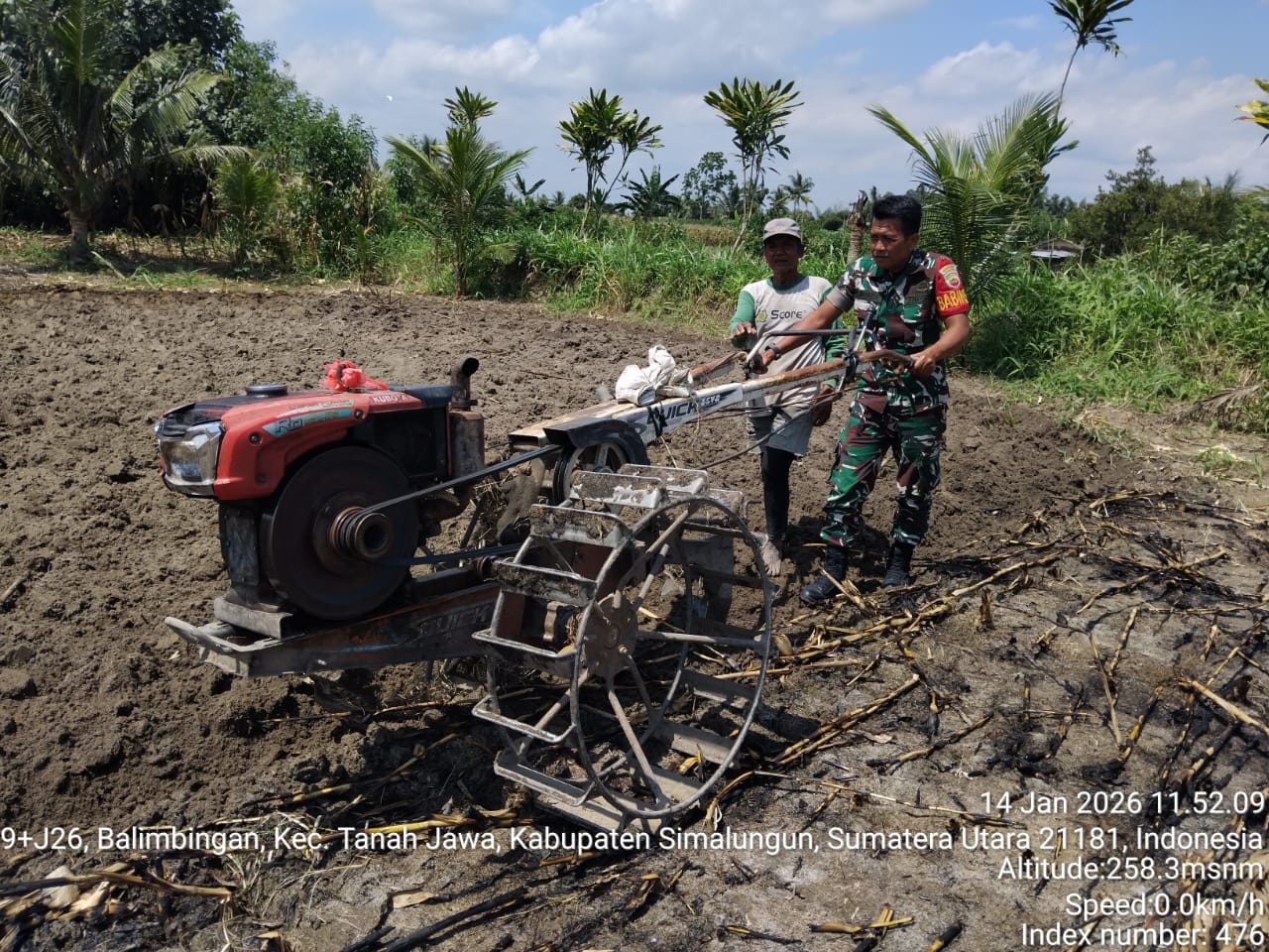 24 MEDIA SUMUT Simalungun — Kepedulian TNI terhadap kesejahteraan petani terus diwujudkan melalui aksi nyata di lapangan. Babinsa Koramil 10/Tanah Jawa Kodim 0207/Simalungun, Serda H. Purba, pada Rabu, 14 Januari 2026, membantu petani Bapak Jupri membajak lahan pertanian yang akan ditanami ubi di Nagori Bahjambi II, Kecamatan Tanah Jawa, Kabupaten Simalungun.