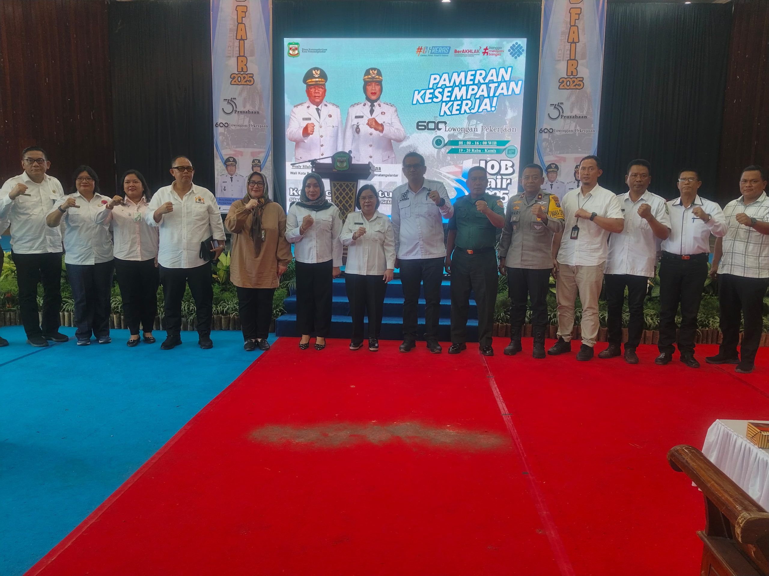 Berbagai unsur pimpinan daerah, instansi pemerintah, lembaga pendidikan hingga dunia usaha hadir dalam kegiatan ini, antara lain, Walikota Pematangsiantar diwakili Staf Ahli, Dra. Happy O. Dagly, Kapolres Pematangsiantar diwakili Kompol Budiono Saputra, S.H., M.H., Perwakilan Disnaker Provinsi Sumut, M. Johan M, Kadisnaker Pemko Pematangsiantar, Robert Sitanggang, S.STP., M.Si., Ketua Kadin Pematangsiantar, Gabriel K.P, Perwakilan Dinas terkait dan perbankan, Para camat/lurah se-Pematangsiantar, Perwakilan SMK negeri/swasta, Perusahaan peserta Job Fair, Seluruh tamu dan undangan.