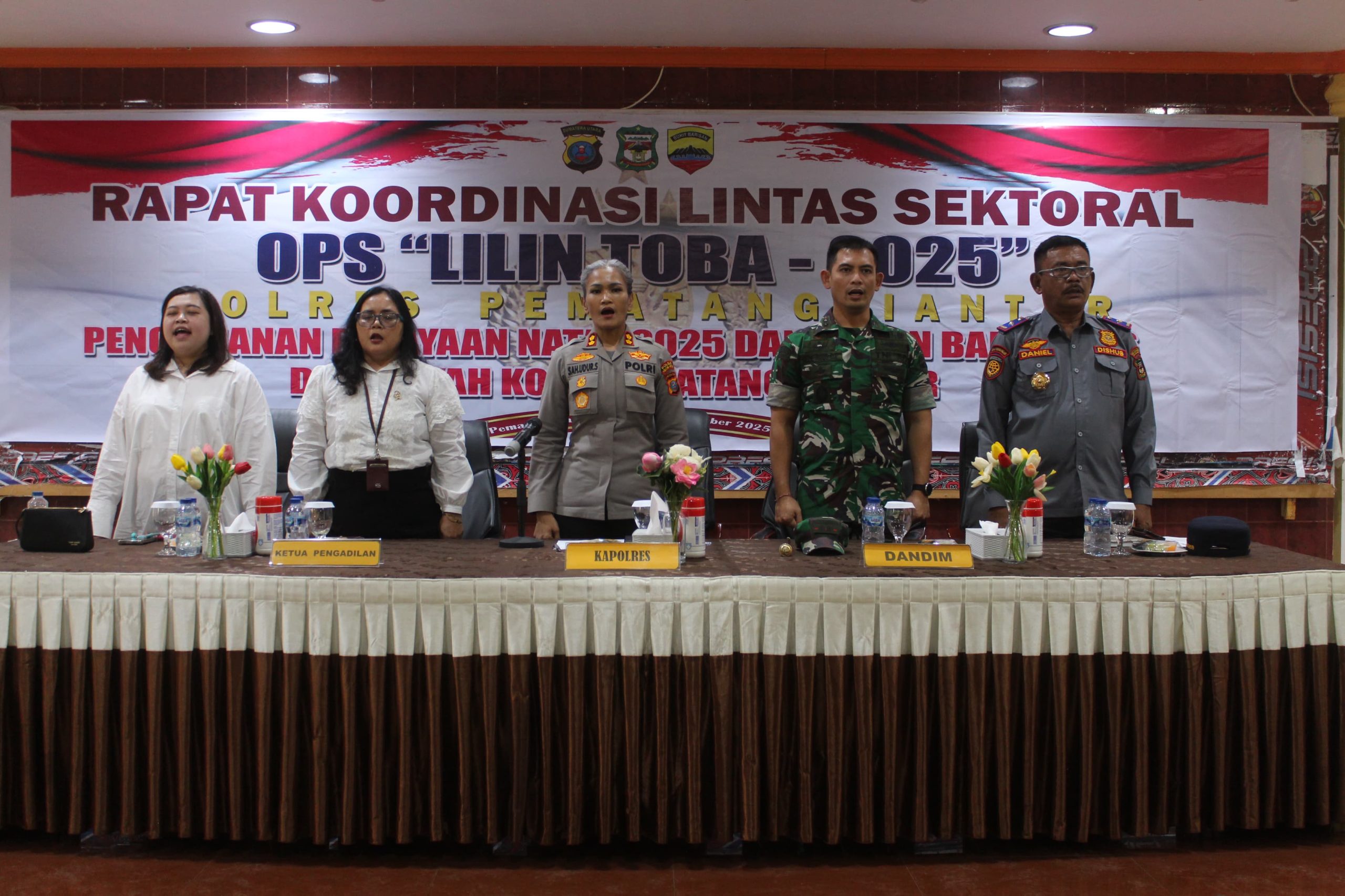 Mendekati perayaan Natal 25 Desember 2025 dan Tahun Baru 2026, Polres Kota Pematangsiantar menggelar Rapat Koordinasi (Rakor) Lintas Sektoral OPS “Lilin Toba -2025 Polres Pematang Siantar” Pengamanan Perayaan Natal Tahun 2025 dan Tahun Baru 2026 di Wilayah Kota Pematangsiantar di Aula Widya Satya Brata Polres Pematangsiantar Jln.Sudirman Kecamatan Siantar Barat Kota Pematang Siantar. Senin (15/12/2025)