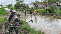 Babinsa dan Warga Nagori Bangun Pane Gotong Royong Bersihkan Bahu Jalan, Cegah Genangan Air di Musim Hujan