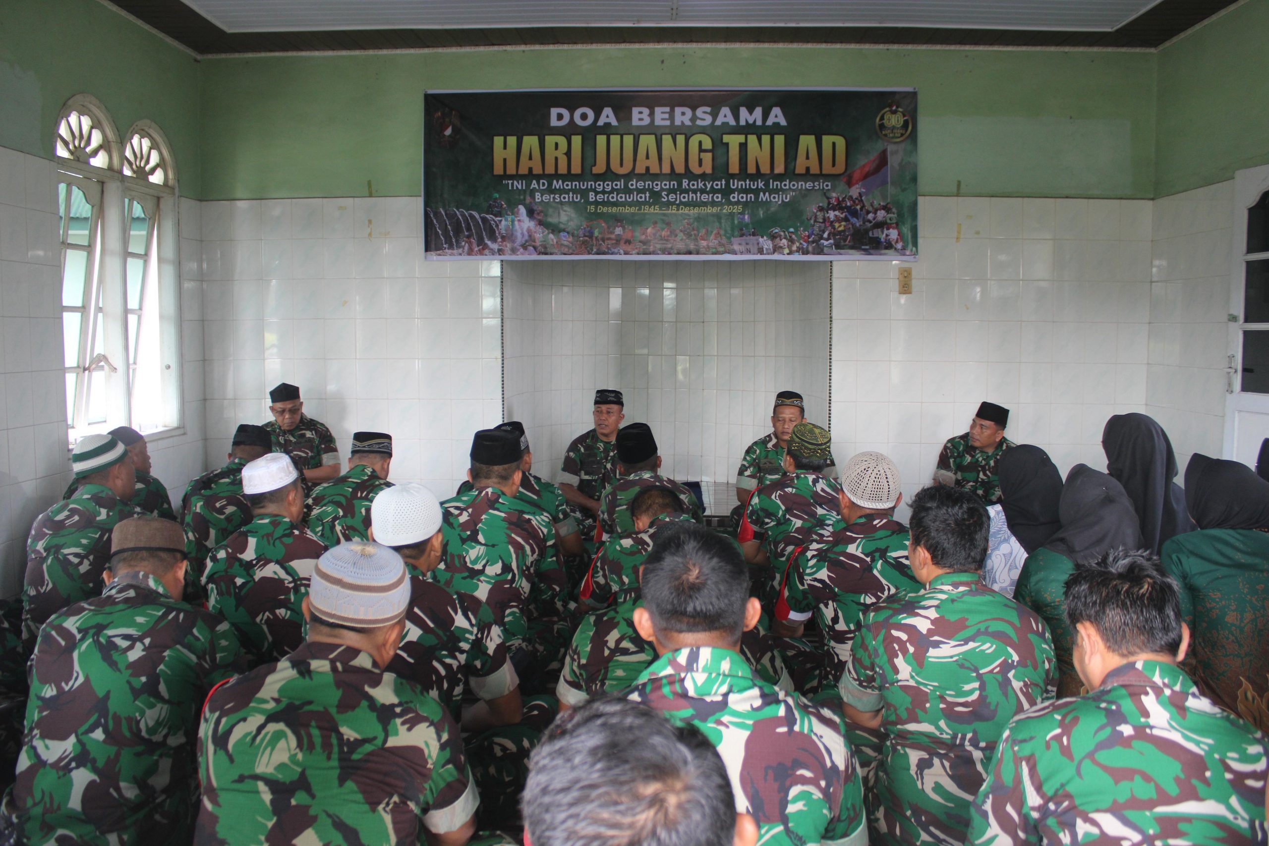 24MEDIA SUMUT Simalungun – Suasana haru dan penuh kekhidmatan terasa kuat di Mushola dan Aula Koramil 08/Bangun Kodim 0207/Simalungun, saat personel TNI, PNS, dan ibu-ibu Persit berkumpul melaksanakan Doa Bersama dalam rangka memperingati Hari Juang TNI AD ke-80, Jumat (12/12/2025).