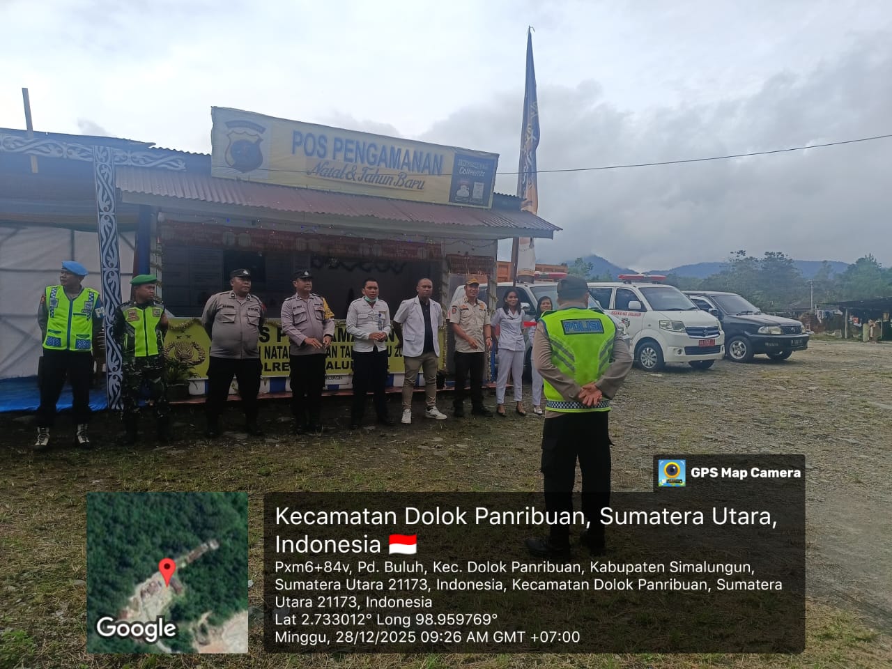 24 MEDIA SUMUT Simalungun — Dalam rangka memberikan rasa aman dan nyaman bagi masyarakat pengguna jalan, Babinsa Koramil jajaran Kodim 0207/Simalungun, Pelda Bambang Suriyanto bersama Koptu Hendra Manurung, bersinergi dengan petugas gabungan melaksanakan tugas pengamanan dan pemantauan di Pos Pam III Simpang Palang, Nagori Pondok Buluh, Kecamatan Dolok Panribuan, Kabupaten Simalungun, Minggu (28/12/2025).