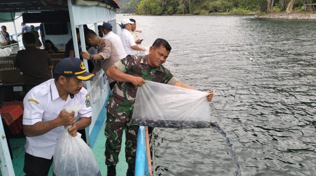 Peduli Kelestarian Danau Toba, TNI–Polri dan Pemkab Simalungun Tebar Benih Ikan di Sibaganding
